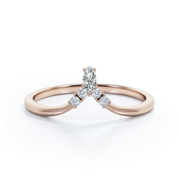 Curved Wedding Band Women Vintage Rose Gold Marquise Cut Diamond Moissanite Wedding Band Unique Pear Shaped Bridal Stacking Promise Gift